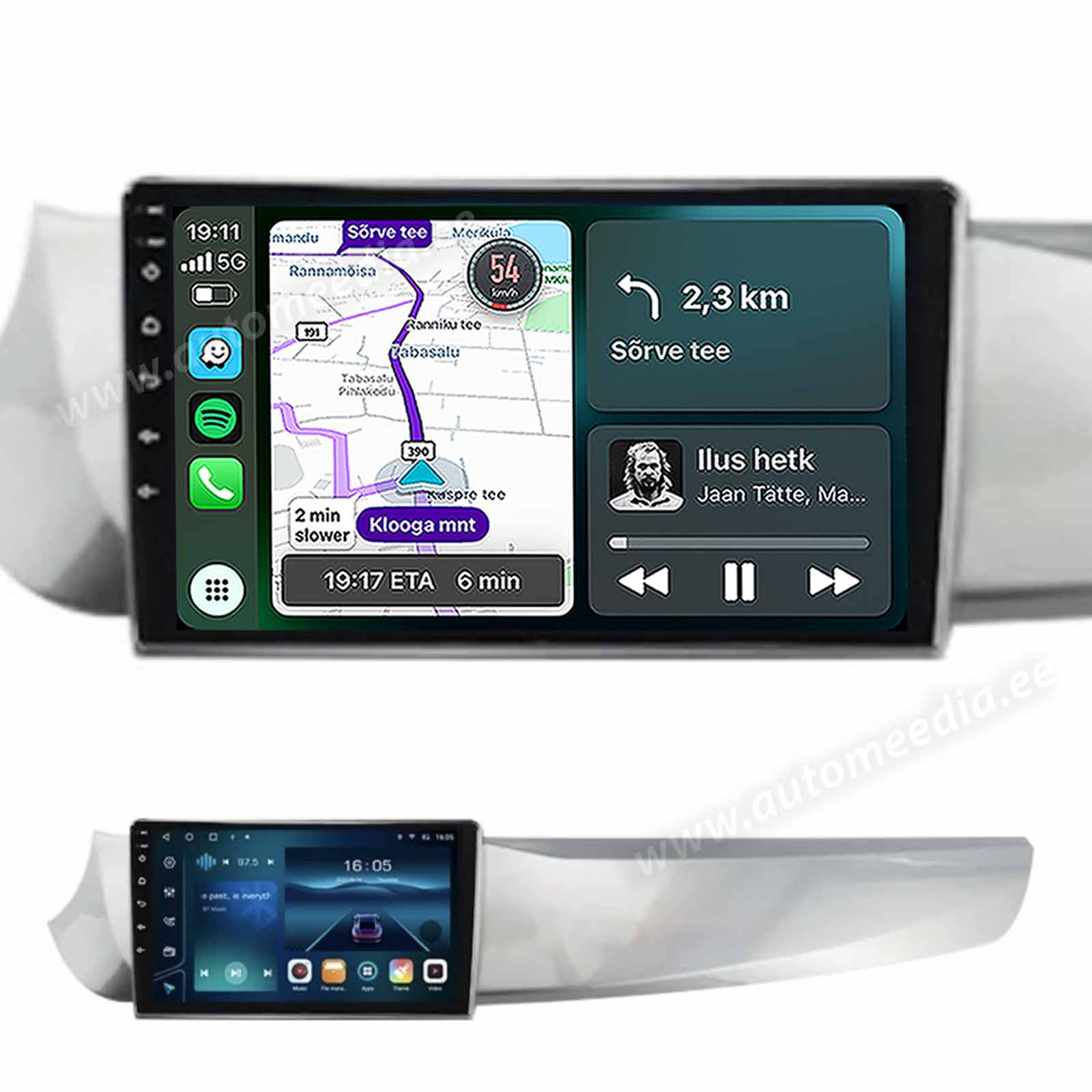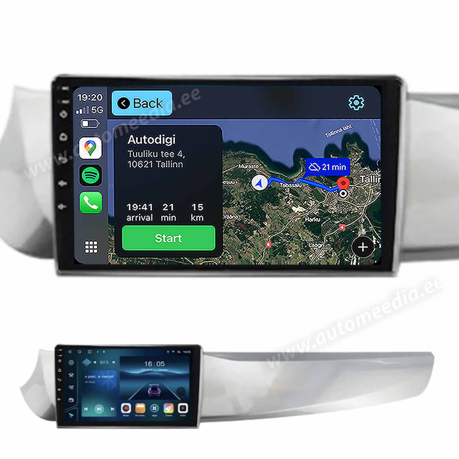 Autoraadiole on sisseehitatud Apple CarPlay (juhtmevaba) ja android telefonidele Android Auto (juhtmega) funktsioon. Ühenda oma telefon meediakeskuse USB kaablile ja too CarPlay rakendused naviraadio ekraanile. Äpid töötavad sinu telefonis, pilt kuvatakse meediakeskuse ekraanile..